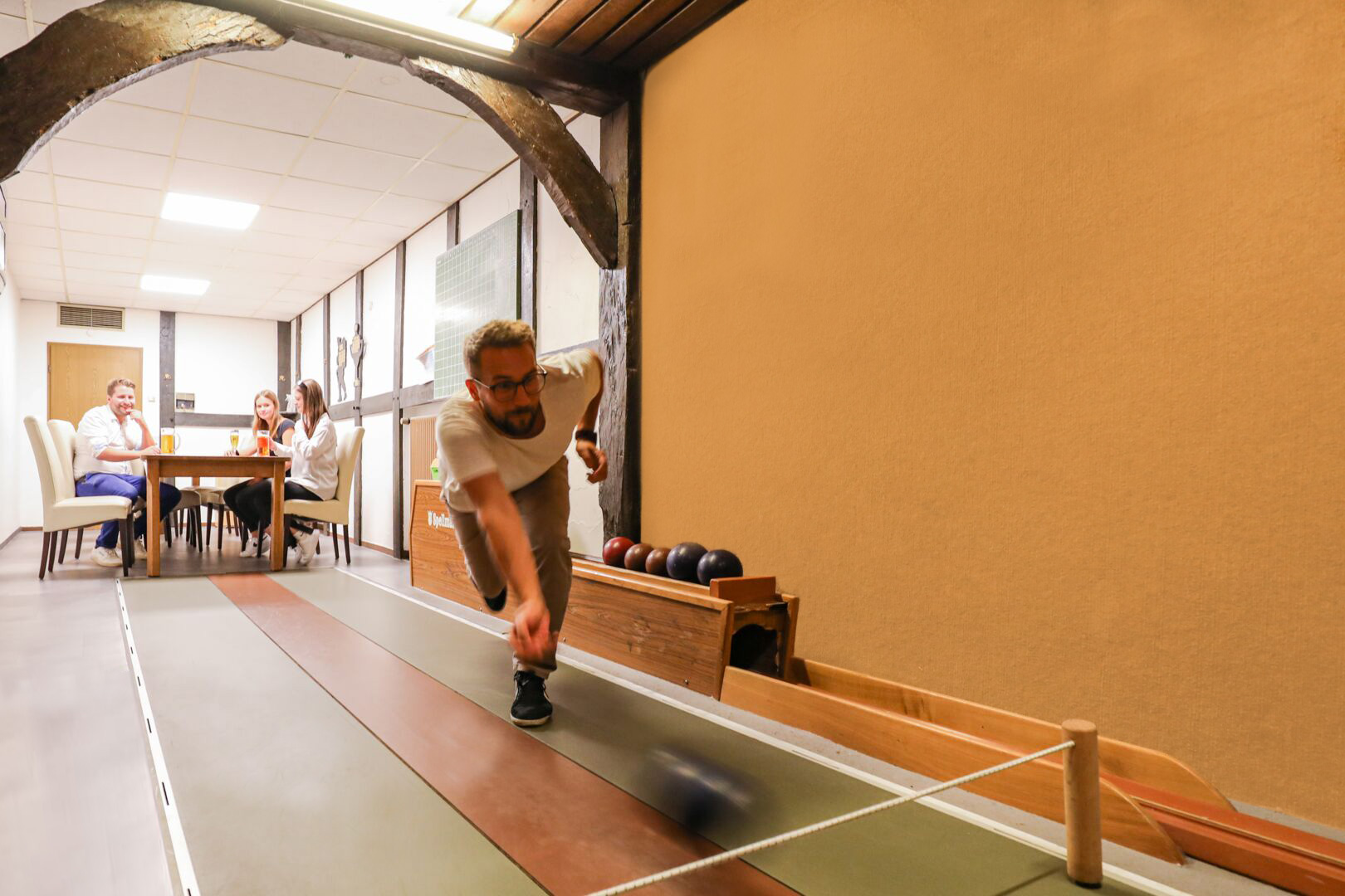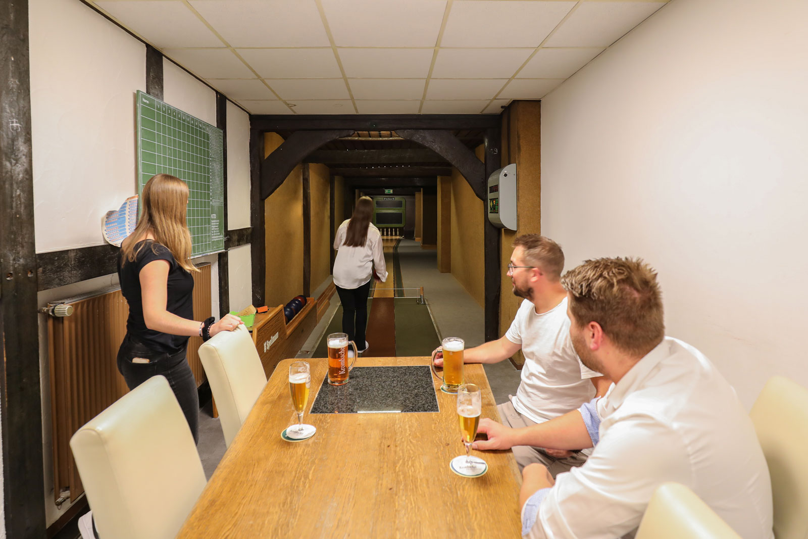 Ganz gleich, ob es draußen hagelt, regnet oder 30 Grad heiß ist: Auf unserer Kegelbahn im Restaurant Hubertus herrschen Bestbedingungen für Sport und Entspannung. Wir wollen Austragungsort spannender Wettkämpfe für Freizeitkegler und für ambitionierte Vereinskegler sein. Darum haben wir unseren Service auf alle Bedürfnisse passend eingestellt. Unsere Gäste und Sportler wissen den gastronomischen Hintergrund unserer Küche zu schätzen. Nehmen Sie Platz und lassen Sie sich in den Pausen Ihres Sports von uns mit Speisen und Getränken verwöhnen. Gut Holz im Hubertus!